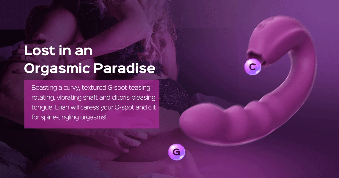 Lilian's 360° rotating head and vibrating clitoral licker satisfy all your senses, no one can resist its powerful vibrations. Target your G-spot with 3 "O" shaped rotating patterns to bring you to a mind-blowing orgasm!